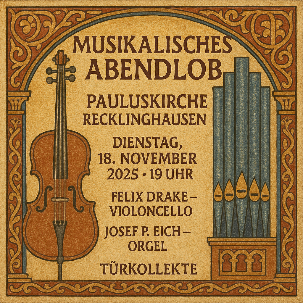 Pauluskirche An der Pauluskirche 15, RecklinghausenDienstag, 21. Oktober 2025 um 19 Uhr Ann-Helena Schlüter, Orgel Werke von Johann Sebastian Bach, Joseph Haydn, Wolfgang Amadeus Mozart u. A.